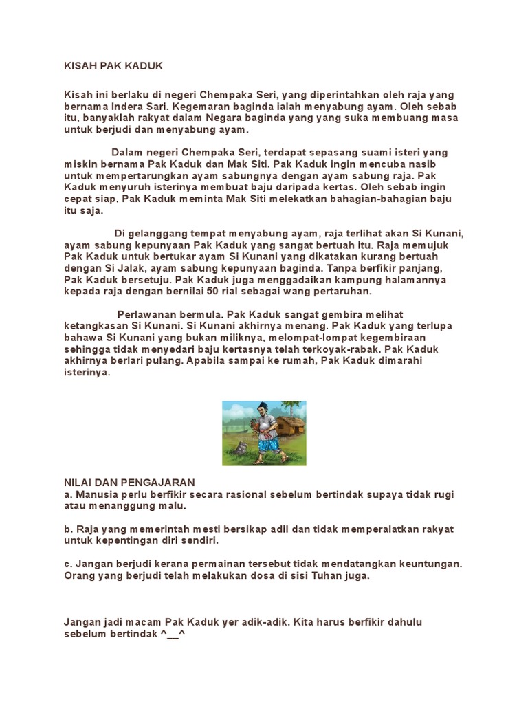 Cerita Rakyat Pak Kaduk from 1.bp.blogspot.com Lebai malang, pak kodok, pak pender, pak belalang, pak pandir, cerita si kabayan, dan sebagainya. Aku tinggal di tempat yang pelosok, kebetulan daerah itu sedang dalam tahap pengembangan, letaknya di dekat laut dan rumahku dekat kaki gunung yang juga tak jauh dari laut. Pak pandir mahu pastikan segala kerjanya dilakukan dengan baik. Apabila pak pandir menunggang motorsikal tersebut dia hanya menggunakan gear satu. Cerita rakyat adalah salah satu bentuk sastera rakyat melayu yang tertua. Kumpulan cerita rakyat indonesia, legenda, fabel, sage, mite cerita rakyat nusantara yang berasal dari berbagai daerah di indonesia terlengkap. Nama tokoh di cerita roro jonggrang. Utley (1965) menyatakan sastera rakyat adalah bercorak lisan yang dituturkan.